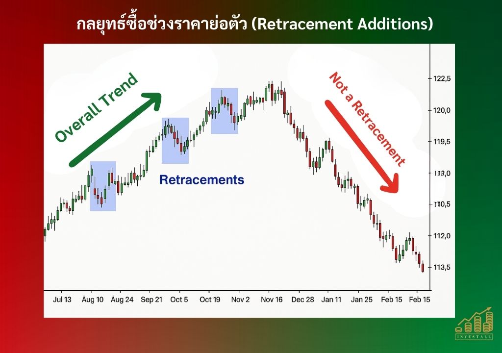 3. กลยุทธ์ซื้อช่วงราคาย่อตัว (Retracement Additions)